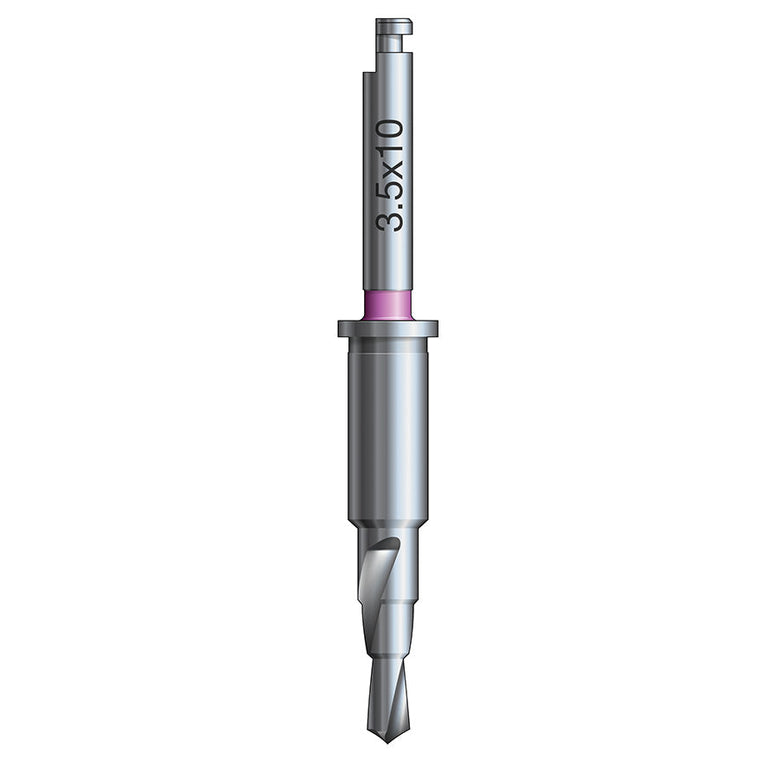 Glidewell HT Guided Pilot Drills are stepped to accommodate the tapered design of the implant. Pilot Drills are available in three lengths: 8 mm, 10 mm and 13 mm for Ø3.5 mm – Ø5.0 mm Implants. Drill length is calculated to indicate where the top of the implant will reside when fully seated to that depth.