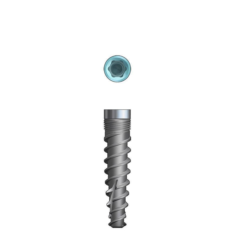 Glidewell HT Implants allow for precise control during placement, engage a maximum amount of bone, and achieve a high degree of primary stability in a wide variety of clinical situations. The unique thread pattern with self-tapping grooves is sharply angled for swift insertion. All Glidewell HT Implants feature a conical internal hex connection for a secure prosthetic seal. Matching components are color-coded by implant diameter and/or restorative platform. To help minimize the overall number of system components, 3.5 mm and 4.3 mm diameter implants share the same restorative platform.