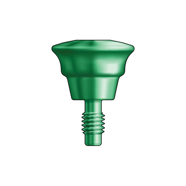 A Glidewell HT Implant Healing Abutment is delivered post-implant placement to close the implant connection and aid in soft-tissue management during the healing phase. Healing abutments may be delivered immediately (single-stage protocol) or after an initial healing period (two-stage protocol), depending upon implant stability. Healing abutments are precisely machined from titanium alloy. The apical portion of the healing abutment is threaded for integration with the internal cavity of a seated implant. The occlusal surface of the healing abutment contains an instrumentation port compatible with the Glidewell HT Implant Prosthetic Driver. Each healing abutment is specific to the restorative platform of the seated implant.