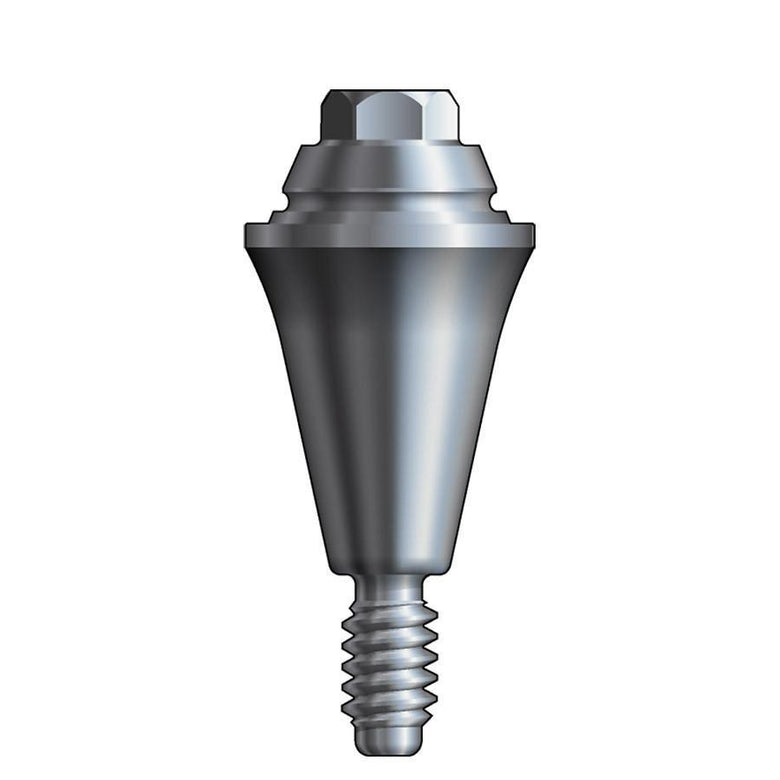 Straight multi-unit abutments lack any anti-rotational features at the implant-abutment interface. The apical portion of a straight multi-unit abutment is threaded for integration with the internal cavity of a seated implant. For abutment delivery, the occlusal surface features a male hex head compatible with the multi-unit driver recommended by the implant manufacturer.