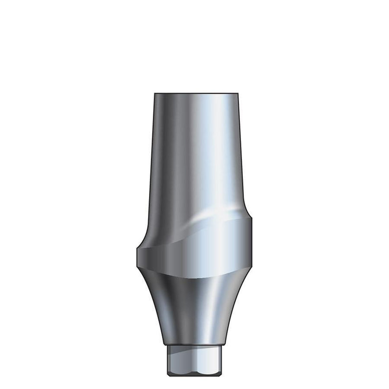 Inclusive Titanium Esthetic Abutments are prefabricated, screw-retained intraoral abutments intended to be connected directly to an endosseous implant for retention of a cemented dental prosthesis. They may be indicated for single- and multiple-tooth restorations. Titanium esthetic abutments are precisely machined from titanium alloy and packaged NON-STERILE. They are attached to the implant fixture with a titanium screw. Unlike the circular emergence profile of standard stock abutments, esthetic abutments are manufactured with a tapered emergence profile for more natural-looking contouring of the soft tissue at the implant site. Each esthetic abutment is specific to the restorative platform of the seated implant, and anatomically designed for the connection site’s region on the ridge (anterior or posterior). In addition to the standard, straight abutment body, angled abutment bodies, produced with a 15 degree slope of one hemisphere to compensate for an undesirable path of insertion resulting from excessive implant angulation, are available.