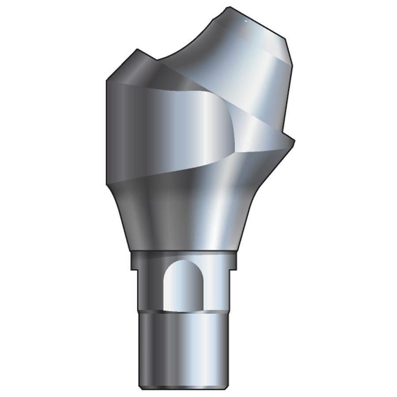 Angled multi-unit abutments of 17 degrees or 30 degrees enable clinicians to compensate for the divergence of seated implants or to otherwise accommodate an angled path of insertion. Angled multi-unit abutments feature an anti-rotational connection interface specific to the matching implant platform, and are attached to the implant fixture with an angled multi-unit abutment screw.