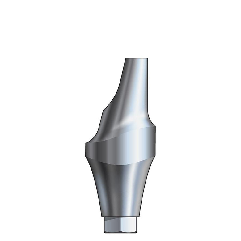 Inclusive Titanium Esthetic Abutments are prefabricated, screw-retained intraoral abutments intended to be connected directly to an endosseous implant for retention of a cemented dental prosthesis. They may be indicated for single- and multiple-tooth restorations. Titanium esthetic abutments are precisely machined from titanium alloy and packaged NON-STERILE. They are attached to the implant fixture with a titanium screw. Unlike the circular emergence profile of standard stock abutments, esthetic abutments are manufactured with a tapered emergence profile for more natural-looking contouring of the soft tissue at the implant site. Each esthetic abutment is specific to the restorative platform of the seated implant, and anatomically designed for the connection site’s region on the ridge (anterior or posterior). In addition to the standard, straight abutment body, angled abutment bodies, produced with a 15 degree slope of one hemisphere to compensate for an undesirable path of insertion resulting from excessive implant angulation, are available.