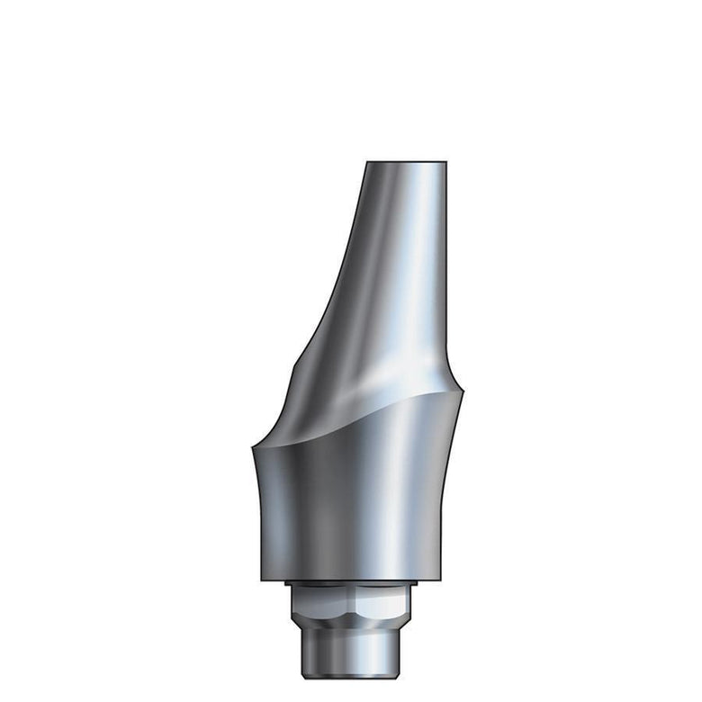 Inclusive Titanium Esthetic Abutments are prefabricated, screw-retained intraoral abutments intended to be connected directly to an endosseous implant for retention of a cemented dental prosthesis. They may be indicated for single- and multiple-tooth restorations. Titanium esthetic abutments are precisely machined from titanium alloy and packaged NON-STERILE. They are attached to the implant fixture with a titanium screw. Unlike the circular emergence profile of standard stock abutments, esthetic abutments are manufactured with a tapered emergence profile for more natural-looking contouring of the soft tissue at the implant site. Each esthetic abutment is specific to the restorative platform of the seated implant, and anatomically designed for the connection site’s region on the ridge (anterior or posterior). In addition to the standard, straight abutment body, angled abutment bodies, produced with a 15 degree slope of one hemisphere to compensate for an undesirable path of insertion resulting from excessive implant angulation, are available.