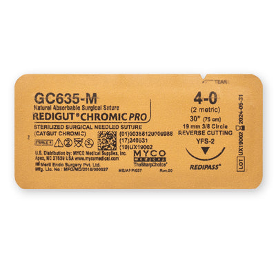 As a resorbable option, REDIGUT® PRO Sutures are available in both polyglycolic acid (PGA) and chromic for a reliable outcome. The sutures are broken down naturally over time, leaving no foreign body left behind. Containing 12 sutures in each box, REDIGUT PRO Sutures come packaged in a special gravity-fed dispenser that provides easy access to suture packets from an opening at the bottom of the box. Its pure foil pouch and medical-grade paper add another layer of protection that secures the integrity of the suture. Included in the REDIGUT PRO packaging is a 3/8 reverse-cutting needle that is specifically created for tough, difficult-to-penetrate tissue. There are several advantages of using a reverse-cutting needle: